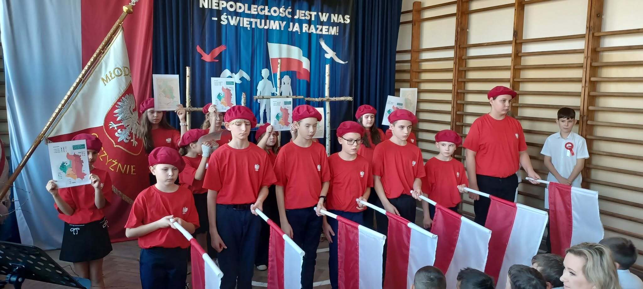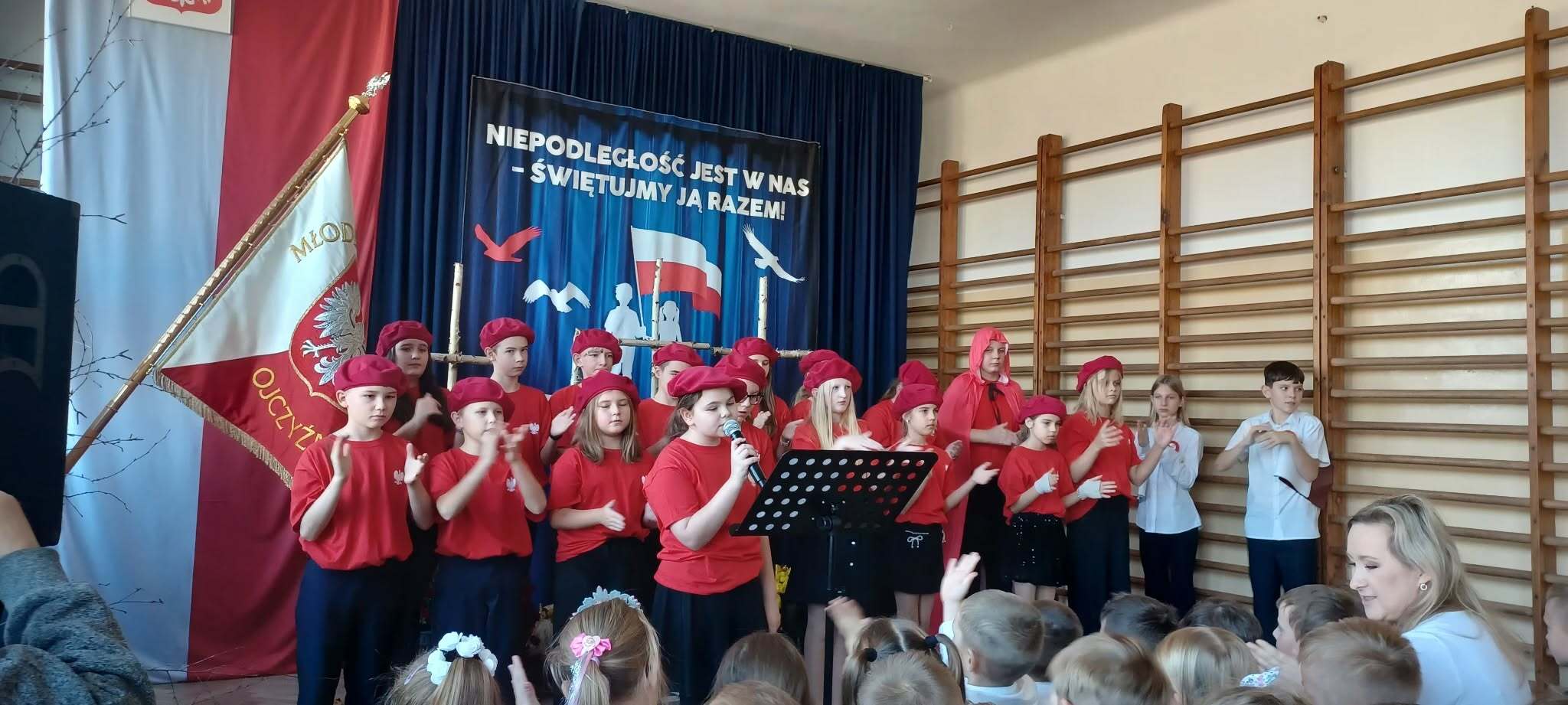 Na zakończenie uroczystości cała społeczność szkolna wzięła udział w akcji „Szkoła do hymnu”, wspólnie odśpiewując „Mazurka Dąbrowskiego”. Był to podniosły i wzruszający moment, który połączył wszystkich uczestników w duchu patriotyzmu i wspólnoty narodowej.