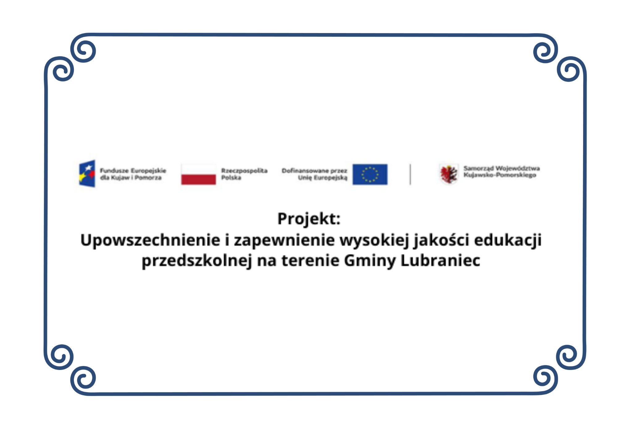 alizacją projektu pt. „Upowszechnienie i zapewnienie wysokiej jakości edukacji przedszkolnej na terenie Gminy Lubraniec” nr FEKP.08.10-IZ.00-0002/25 realizowanym przez Gminę Lubraniec w ramach w ramach Działania 8.10 Wychowanie przedszkolne – ZITy regionalne Programu Fundusze Europejskie dla Kujaw i Pomorza 2021–2027, współfinansowanym ze środków Europejskiego Funduszu Społecznego Plus, ogłasza się nabór uczestników do niniejszego Projektu.