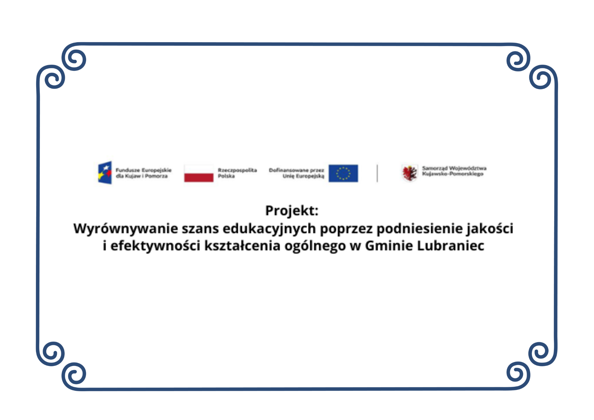 Wyrównywanie szans edukacyjnych poprzez podniesienie jakości i efektywności kształcenia ogólnego w Gminie Lubraniec” nr FEKP. FEKP.08.13-IZ.00-0002/25 realizowanego przez Gminę Lubraniec w ramach Działania 8.13 Kształcenie ogólne ZITy regionalne Programu Fundusze Europejskie dla Kujaw i Pomorza 2021–2027, współfinansowanego ze środków Europejskiego Funduszu Społecznego Plus.