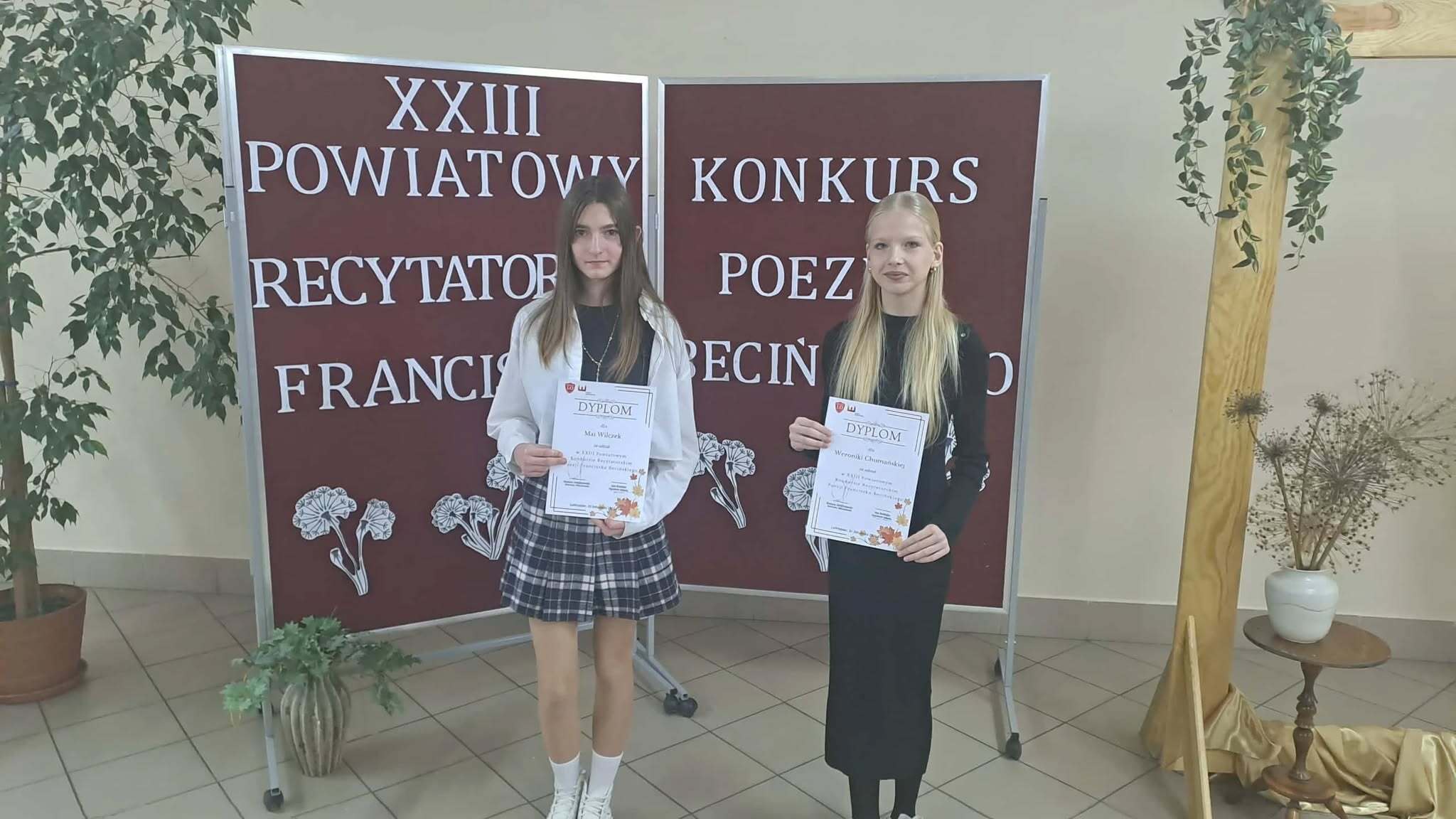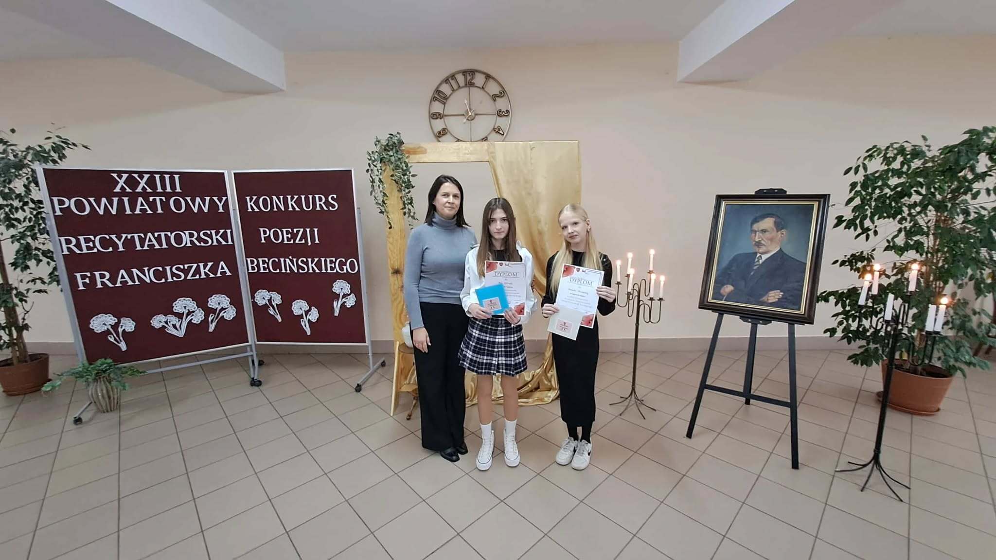 25 listopada, uczennice naszej szkoły: Weronika Chumańska i Maja Wilczek, wzięły udział w XXIII Powiatowym Konkursie Recytatorskim Poezji Franciszka Becińskiego.